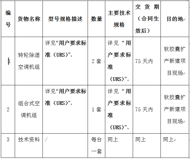 凯时尊龙集团软胶囊扩产新建项目转轮除湿空调机组及组合式空调机组设备采购招标公告