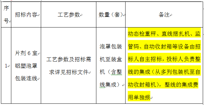 昆明中药厂有限公司中药现代化提产扩能建设项目(一期) 铝塑泡罩包装连线设备采购招标公告