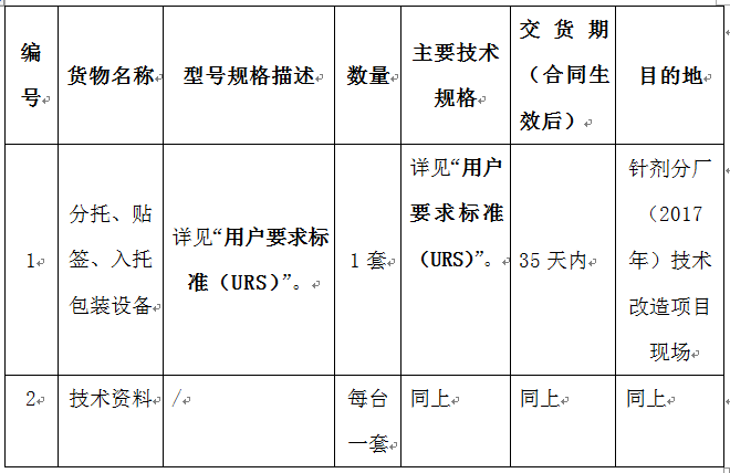 凯时尊龙集团针剂分厂(2017年)技术改造项目分托、贴签、入托包装设备采购 招标公告