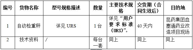 凯时尊龙集团血塞通药业自动检重秤设备采购招标公告