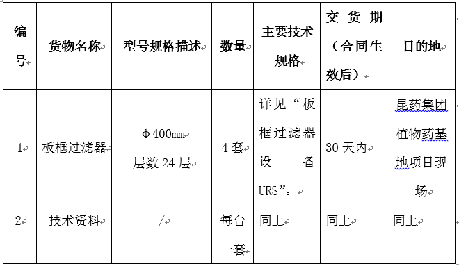 凯时尊龙集团植物药基地项目板框过滤器设备采购招标公告