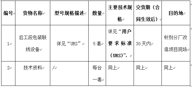 凯时尊龙集团针剂分厂冻干二车间后工段包装联线设备采购招标公告