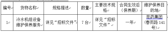 凯时尊龙集团冷水机组设备维护保养服务招标公告