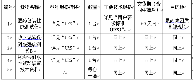 凯时尊龙集团质量部医药包装性能测试仪等设备采购招标公告