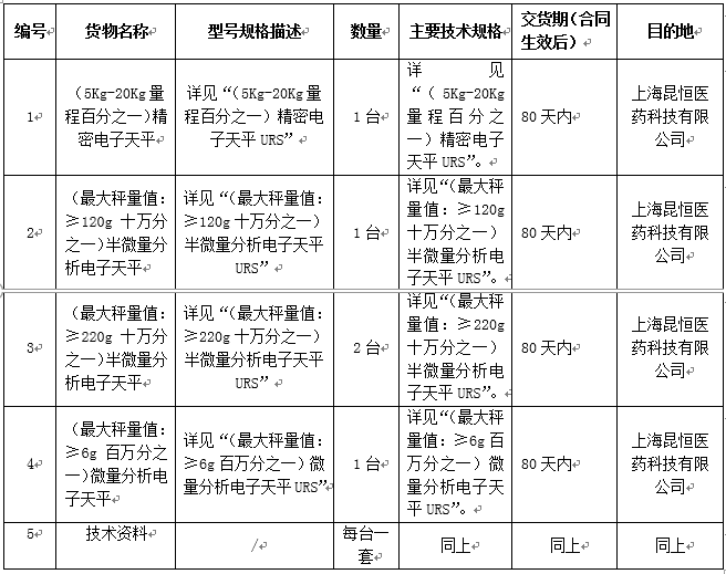 凯时尊龙集团上海昆恒医药科技有限公司电子天平采购招标公告
