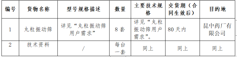昆明中药厂有限公司丸粒振动筛设备采购招标公告