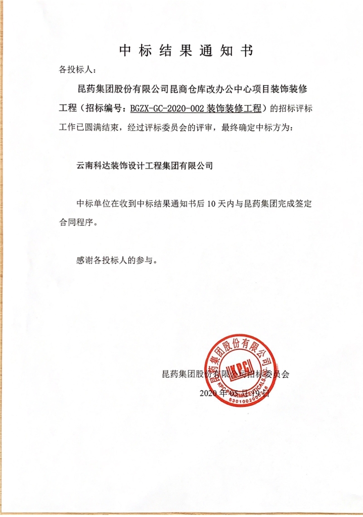 <span class="bdsharebuttonbox" data-tag="share_3" data-sharetitle="凯时尊龙集团股份有限公司昆商仓库改办公中心项目装饰装修工程中标公示"><a href="#" class="bds_sqq" data-cmd="sqq" title="分享到QQ好友"></a><a href="#" class="bds_weixin" data-cmd="weixin" title="分享到微信"></a><a href="#" class="bds_qzone" data-cmd="qzone" title="分享到QQ空间"></a><a href="#" class="bds_tsina" data-cmd="tsina" title="分享到新浪微博"></a><a href="#" class="bds_more" data-cmd="more"></a></span> 凯时尊龙集团股份有限公司昆商仓库改办公中心项目装饰装修工程中标公示 <span><i class="ico-1"></i>2020-05-21</span><span class="views"><i class="ico-1"></i><b id="viewCountId"></b></span><span id="switcher"> <a href="javascript:void(0)" id="big"><i class="ico-1"></i></a> <a href="javascript:void(0)"><i class="ico-1"></i></a> <a href="javascript:void(0)" id="small"><i class="ico-1"></i></a> </span> 上一条凯时尊龙生物医药科技园天然植物药创新基地化学合成原料药中试车间项目土建工程中标公示 下一条中标结果公示(凯时尊龙集团股份有限公司及子公司2023年度财产一切险及机器损坏险)