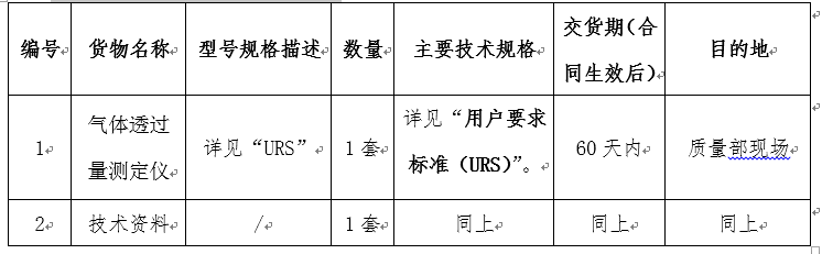 凯时尊龙集团质量部气体透过量测定仪设备采购招标公告