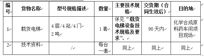 凯时尊龙集团马金铺化学合成原料药车间载货电梯设备采购招标公告