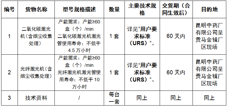 2021年凯时尊龙集团昆明中药厂有限公司四车间激光标刻机设备采购项目招标公告