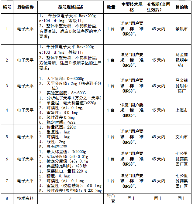凯时尊龙集团电子天平设备集中采购招标公告